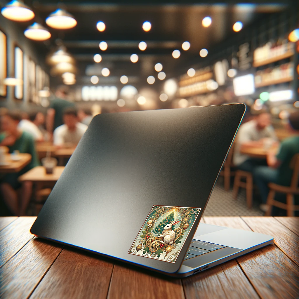 Celebrate the beauty of the holiday season with the Celestial Holiday Hare Sticker! Featuring an elegant white bunny resting amidst intricate golden scrollwork, holly leaves, and glowing ornaments, this design captures the magic of Christmas. In the background, a beautifully decorated Christmas tree shines brightly, evoking warmth and festive cheer.