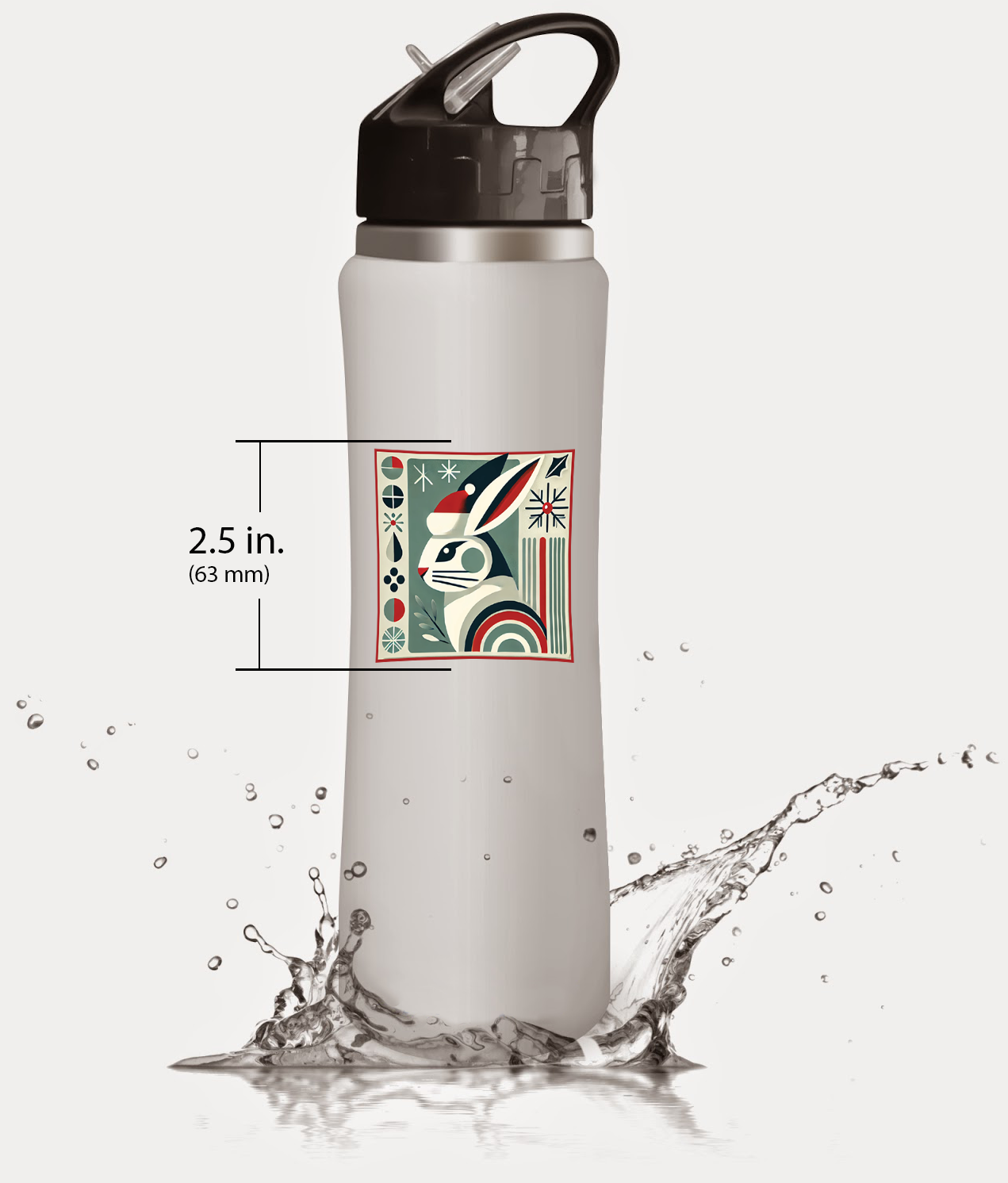 Bring a touch of retro holiday flair to your collection with the Retro Frost Bunny Sticker! Featuring a bold, mid-century modern design of a bunny wearing a Santa hat, accented by geometric patterns, snowflakes, and festive colors, this sticker exudes timeless seasonal charm.