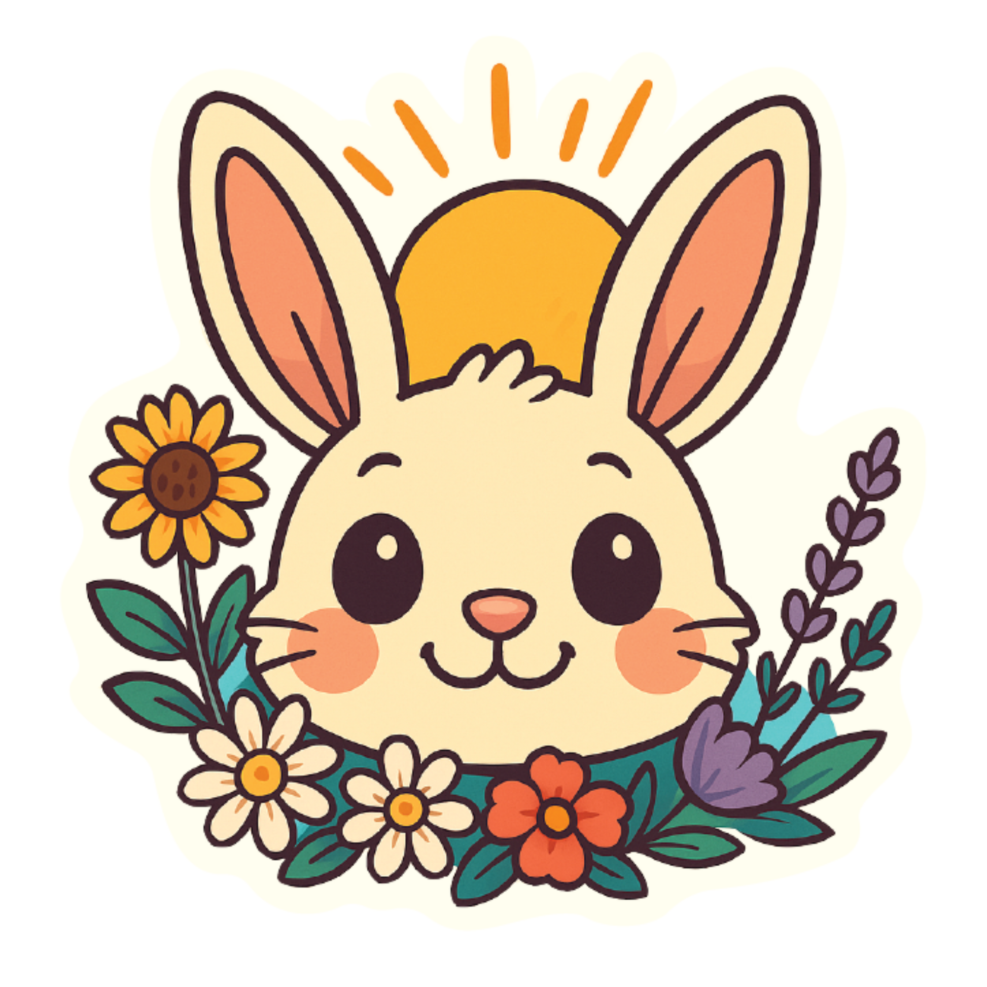 Welcome the longest day of the year with Solstice Sunshine, a bright and joyful bunny bursting with summer energy. This cheerful little rabbit peeks out from a ring of wildflowers with the golden sun rising behind its ears, ready to soak in the warmth of the season. Radiating pure happiness and sunshine vibes, this sticker is the perfect way to celebrate the start of summer, whether you’re heading to a picnic, decorating your water bottle, or just want to carry a little sunshine wherever you go. Durable and weather resistant, it’s made to stick with you through all your summer adventures.