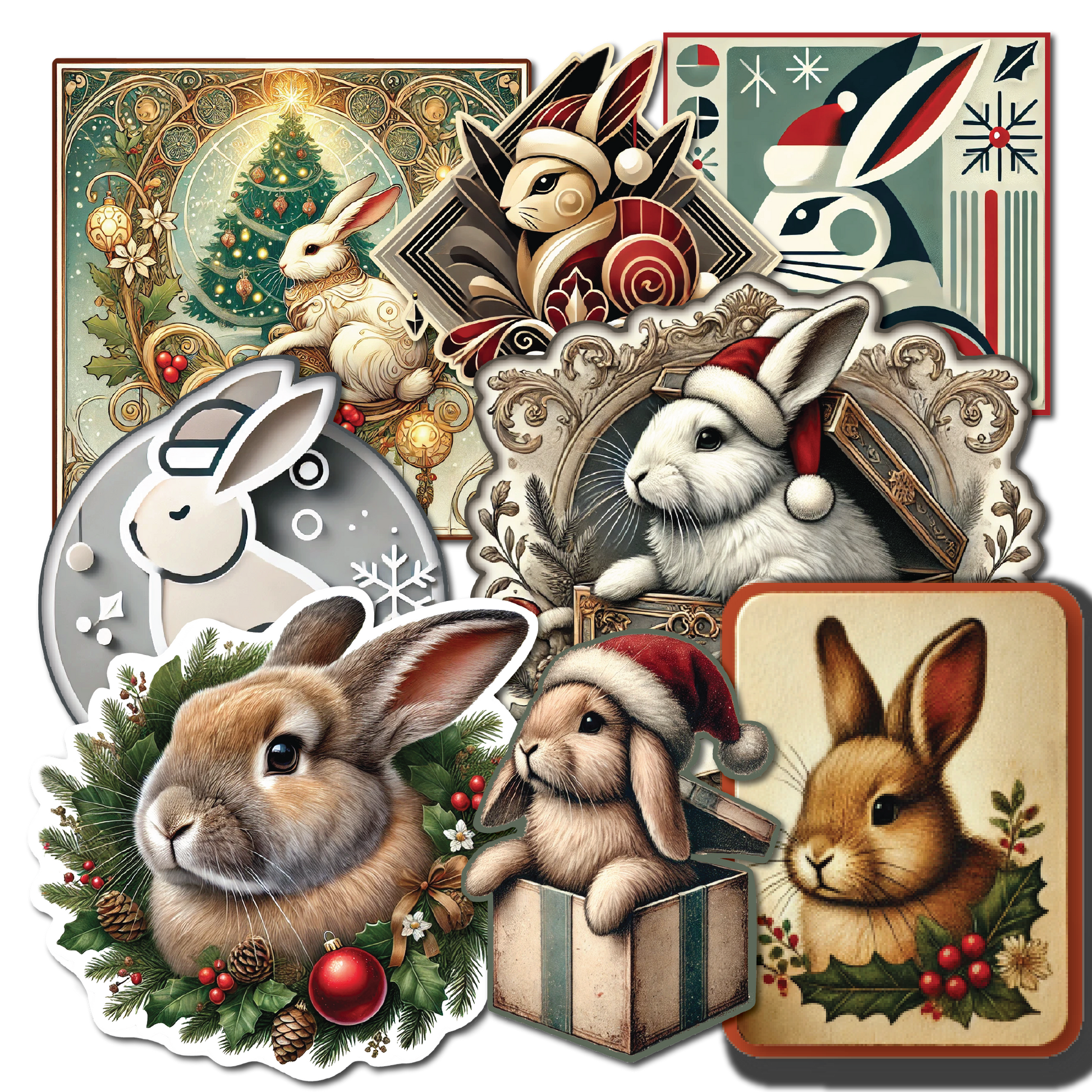 Celebrate the magic of the season with the Timeless Holiday Rabbit Collection, a delightful bundle of 8 stickers featuring beautifully crafted designs of rabbits in festive settings. From vintage-inspired frames and wreaths to playful holiday hats and ornaments, these stickers bring a unique blend of nostalgia and warmth to your decorations. Perfect for holiday cards, gift wrapping, planners, or crafting projects, this collection is a must-have for anyone who loves the holidays and adorable bunnies.