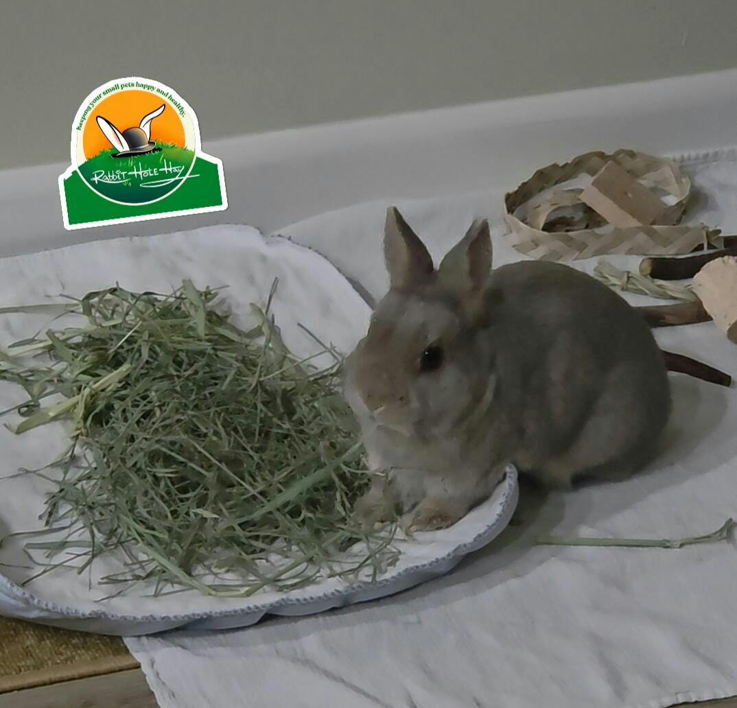 The best way to help transition your small pet to Rabbit Hole Hay grass hay is to blend approximately 25% of Rabbit Hole Hay Grass Hays with your pets old grass hay gradually increasing over the next 1-2 weeks.