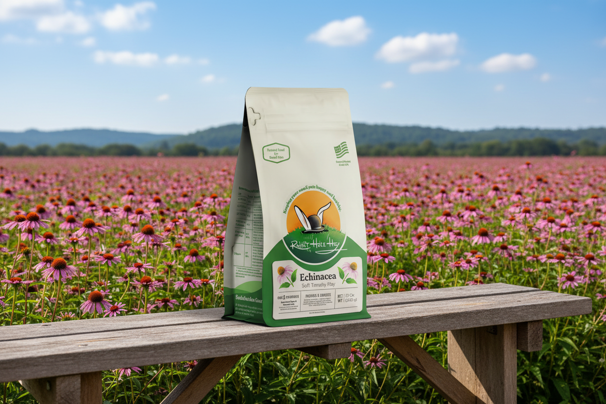 Give your rabbit a flavorful, health-supporting treat with our Echinacea Soft Timothy Hay. This premium blend combines our velvety Soft Timothy Hay with dried echinacea stems, creating a wholesome, aromatic mix that encourages natural foraging and adds gentle botanical enrichment to your small pet’s diet.