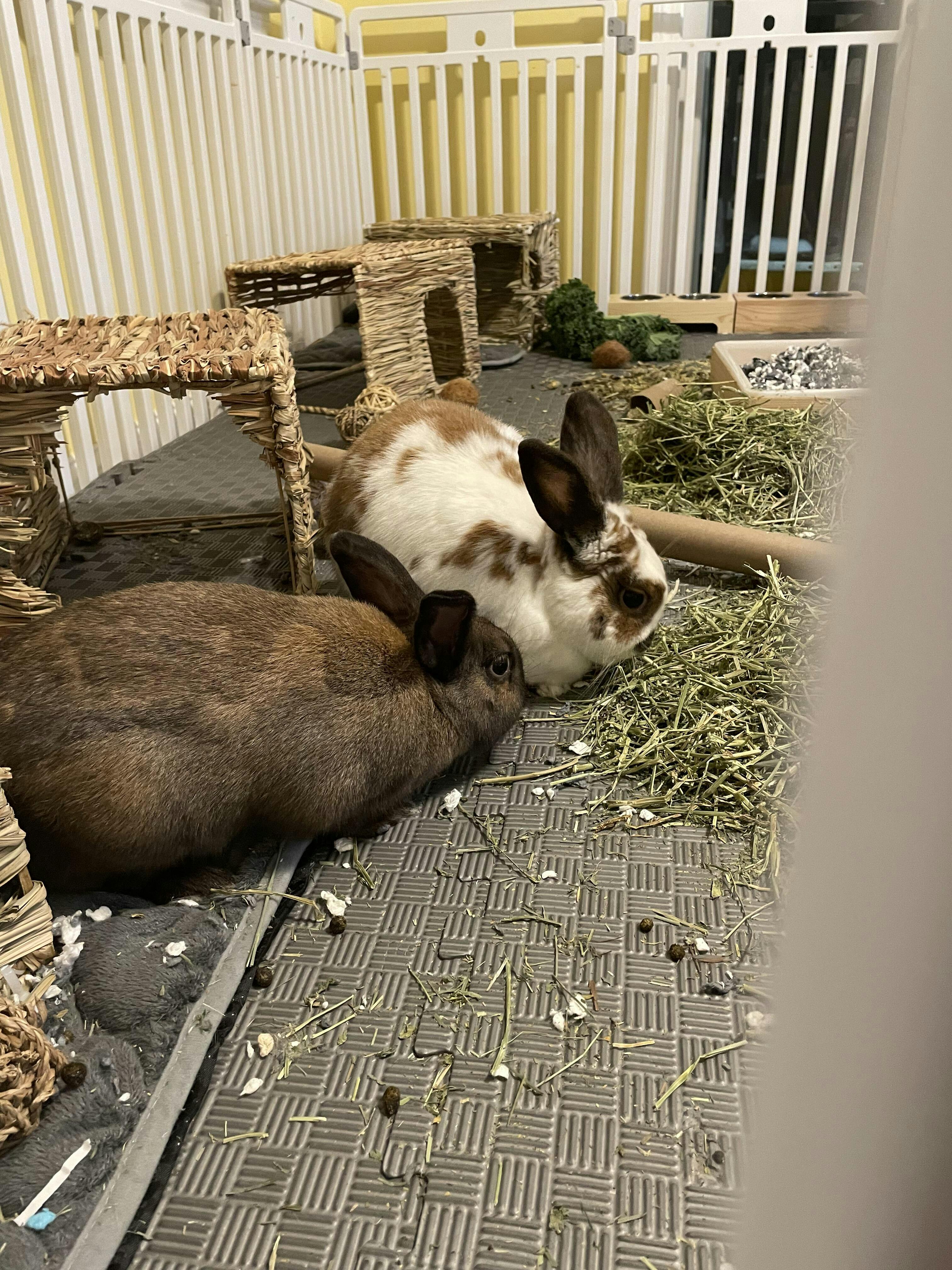 - For rabbits 7 months and older and guinea pigs 6 months and older, grass hay should make up 80% of their diet.